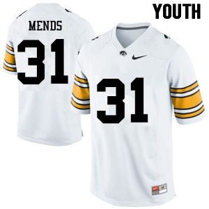 Youth University of Iowa #31 Aaron Mends White Embroidery Jersey 20143-101