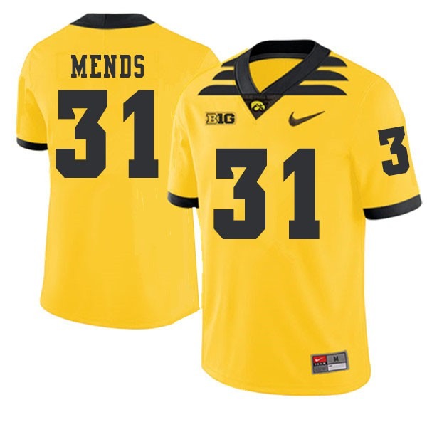Mens Iowa Hawkeyes #31 Aaron Mends Gold 2019 Alternate Football Jerseys 20143101