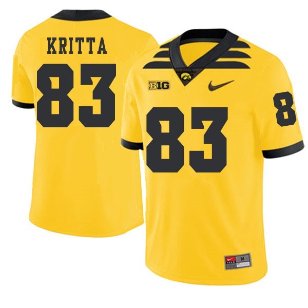 Mens Iowa Hawkeyes #83 Alec Kritta Gold 2019 Alternate Embroidery Jerseys 360544-311
