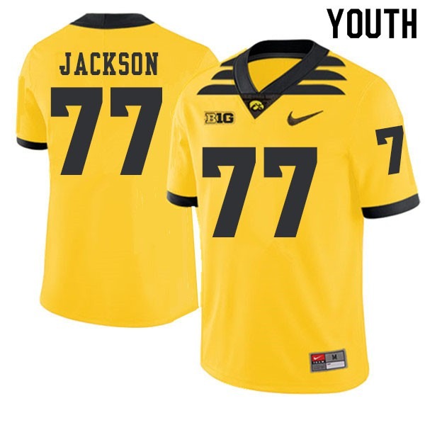 Youth Hawkeyes #77 Alaric Jackson Gold 2019 Alternate Official Jersey 2014311-664